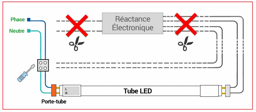 Remplacer un tube fluorescent par un tube LED T8 sur une installation avec ballast électronique