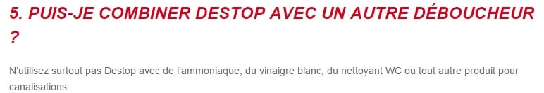 Même si le site officiel de Destop y fait référence … conseillant de ne pas associer leur produit au vinaigre :