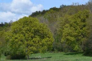 Chêne isolé en lisière, prairie toute proche : le terrain idéal pour le geai.