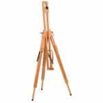 Pour peindre dehors, en pleine nature ou sur le motif, rien ne remplace le chevalet de campagne. Léger, compact, il se prête volontiers aux déplacements. Son trépied s’adapte à la pente du terrain, et les pieds réglables permettent de corriger les irrégularités du sol. La hauteur atteint généralement 75 cm, ce qui suffit pour une utilisation nomade.