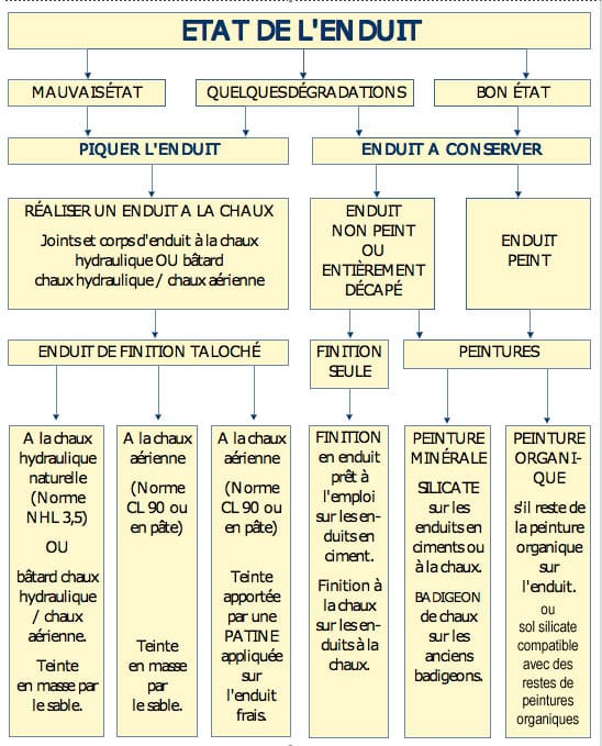 - CHOISIR UNE SOLUTION : Faut-il garder, reprendre, ou purger ? Enduit en place, nature du support, types de reprises, enduits industriels ou artisanaux, peinture ou non.