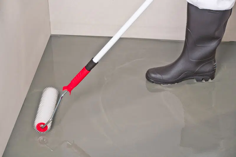 Verser le produit enrouleur sur le substrat. Étaler avec une machine à lisser.