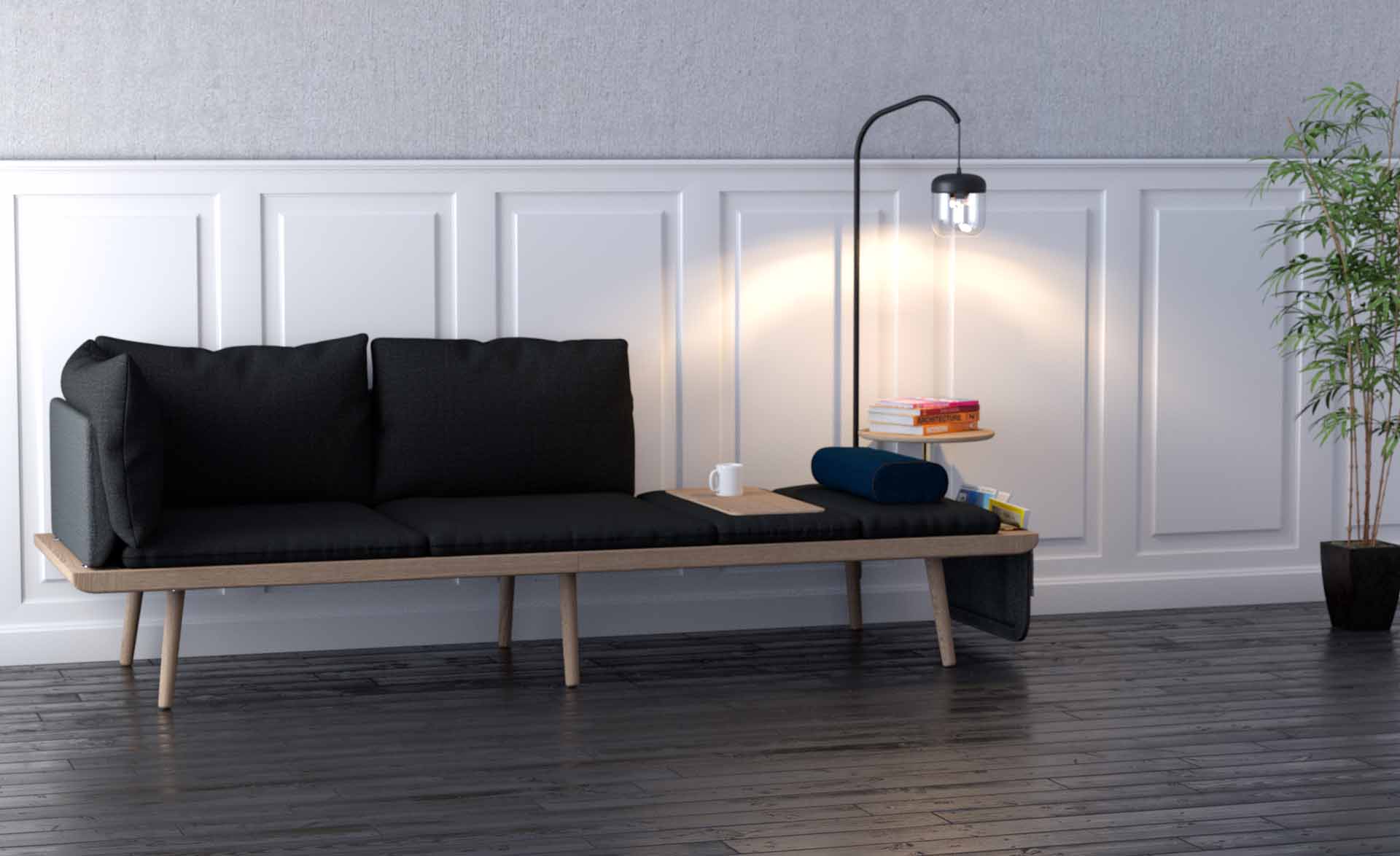 A lampe près du canapé, éclairer une zone spécifique, est utile pour la lecture — Vita Copenhagen