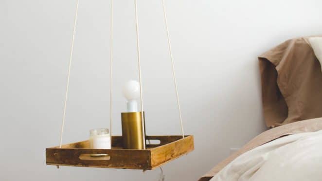 Dans une chambre, il n’est pas toujours possible de placer des tables de chevet autour du lit. Pourtant, nous avons tous besoin d’un endroit pour mettre nos livres, téléphones, réveils et autres accessoires de nuit.
