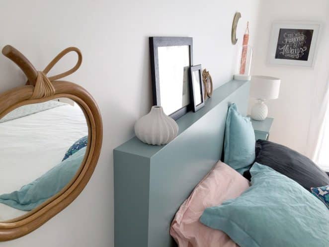 L’ idée de cet article m’est venue quand j’ai emménagé dans ma maison. Ma tête de lit est encadrée par une alcôve que je ne peux pas tenir. Avec mon lit double, vous ne trouvez pas d’espace supplémentaire !